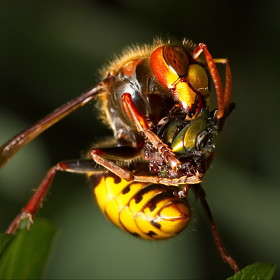 Оса доедает пойманую муху