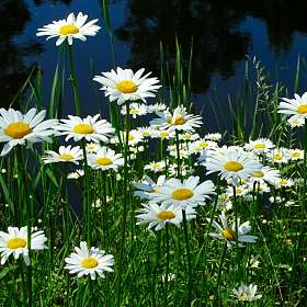 Ромашки у лесного пруда