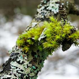 Зеленеет мох на старой берёзе.
