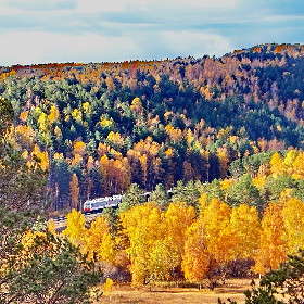 Поезд в осеннем лесу