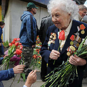 Рига. Цветы ветерану.