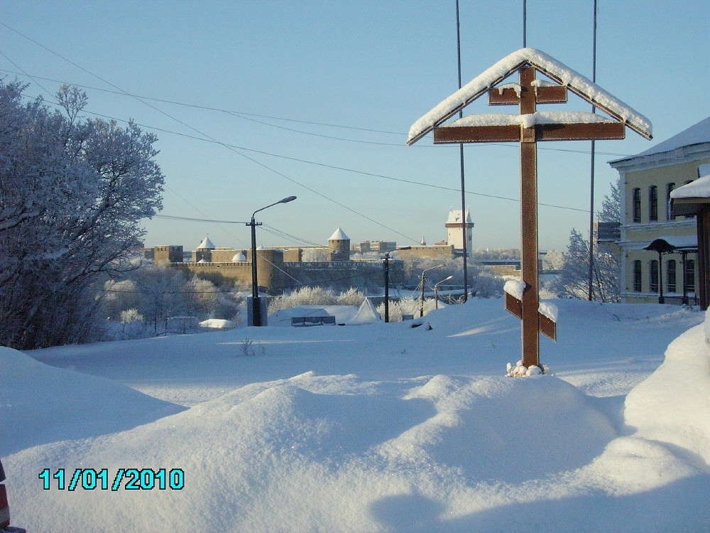 Православный крест на фоне лютеранской Нарвы