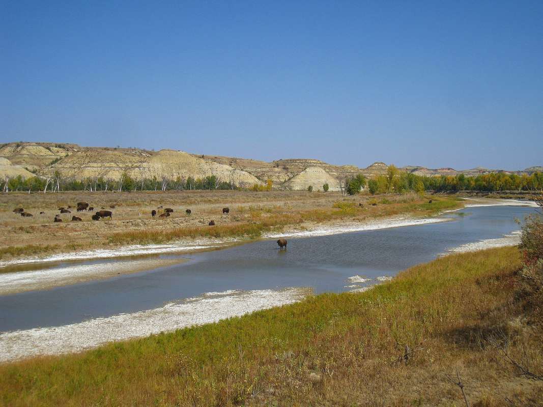 Дикие бизоны в долине реки Малая Миссури.