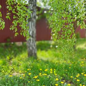 Берёзка и одуванчики..