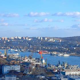 Ряды облаков, домов и кораблей