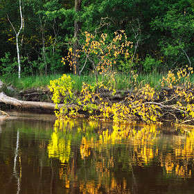 Заходящее солнце на упавшее дерево............